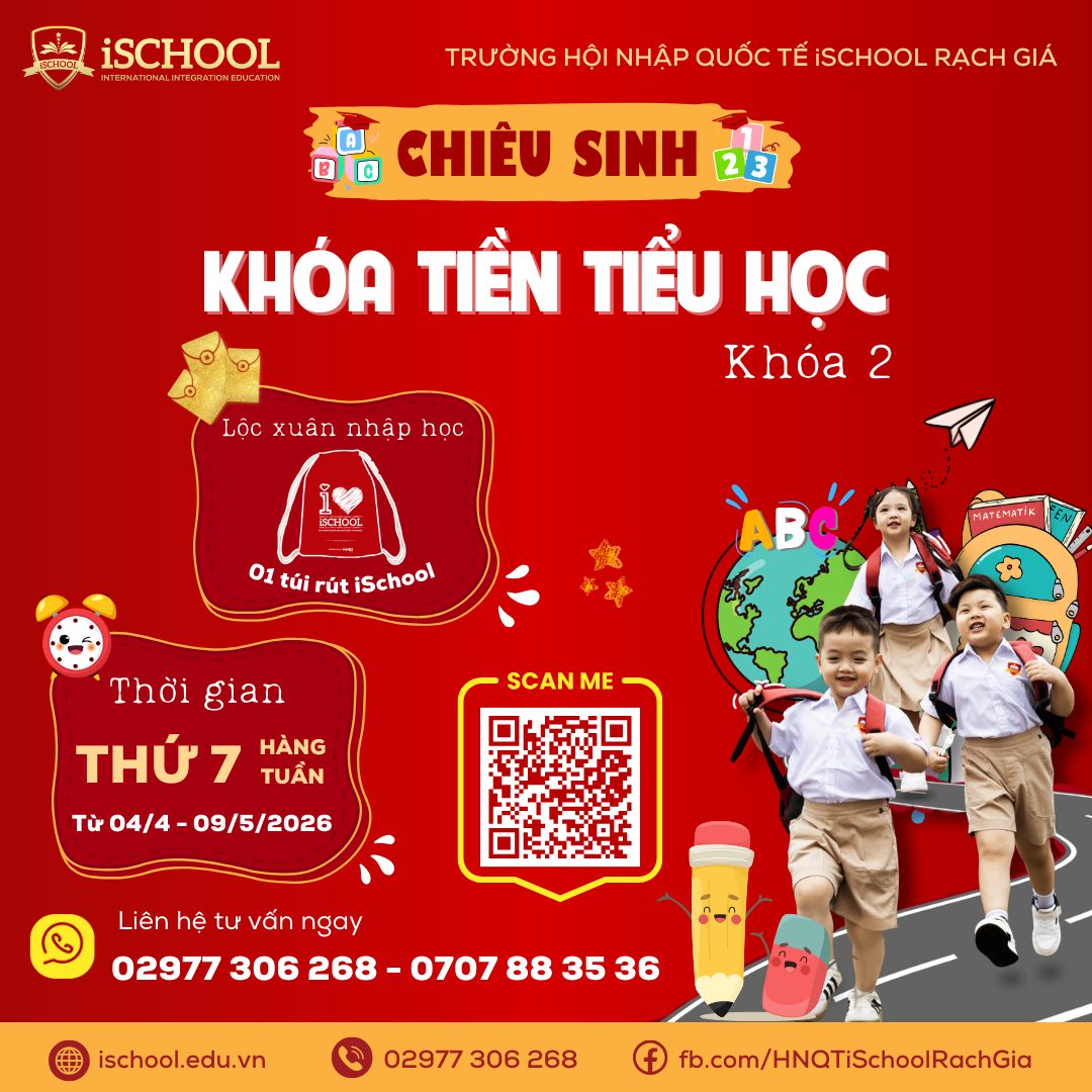 Khóa TIỀN TIỂU HỌC – Khóa 2 khai giảng ngày 04/04/2026 tại iSchool Rạch Giá chính là “cầu nối vàng” giúp con chuyển cấp NHẸ NHÀNG – TỰ TIN – HIỆU QUẢ!