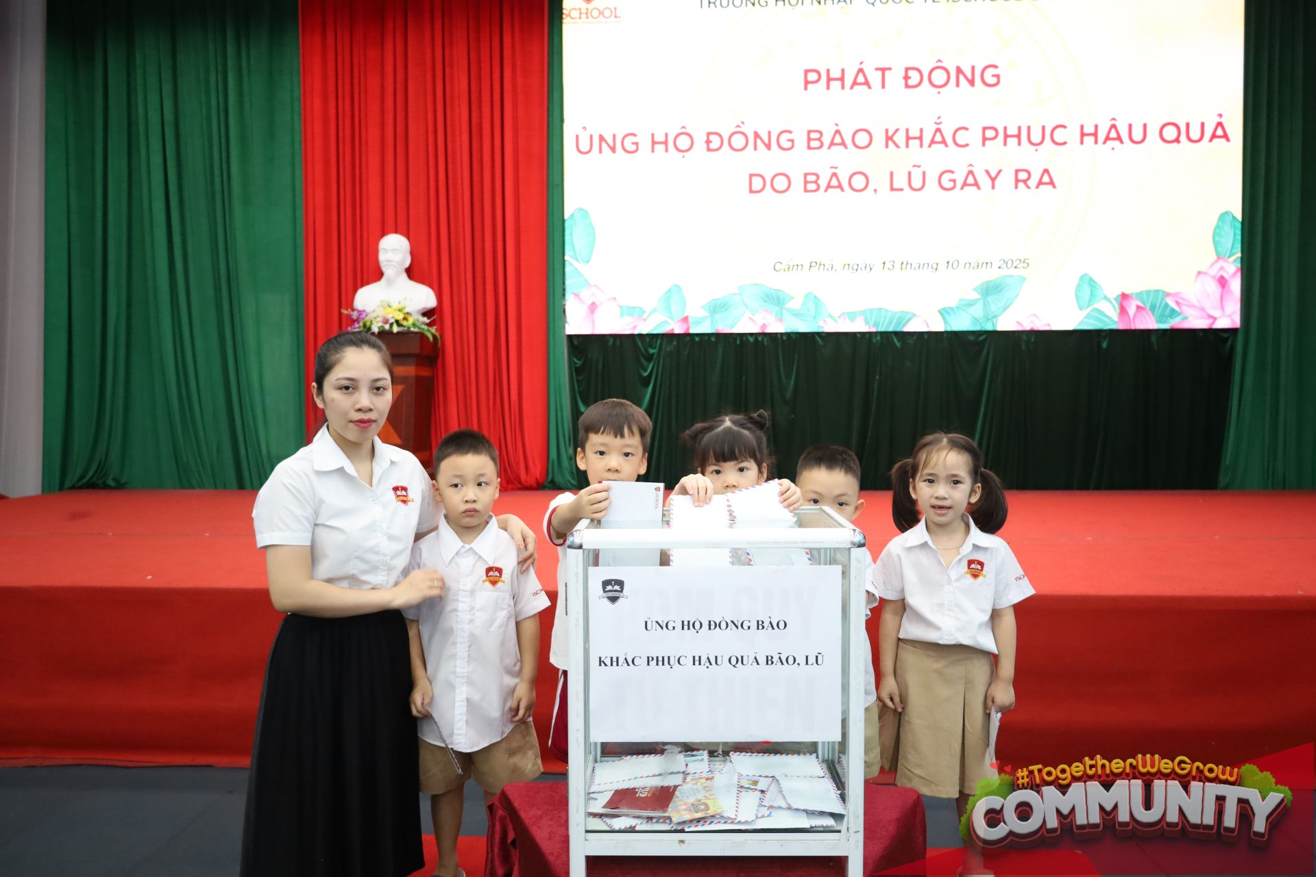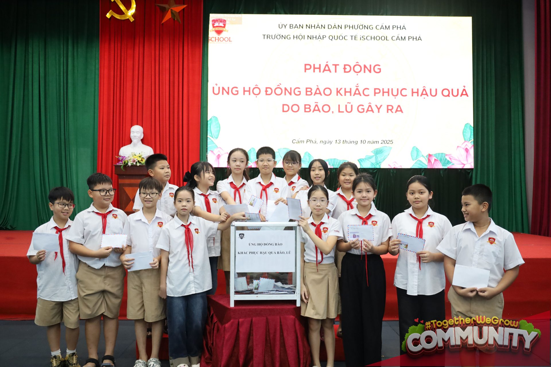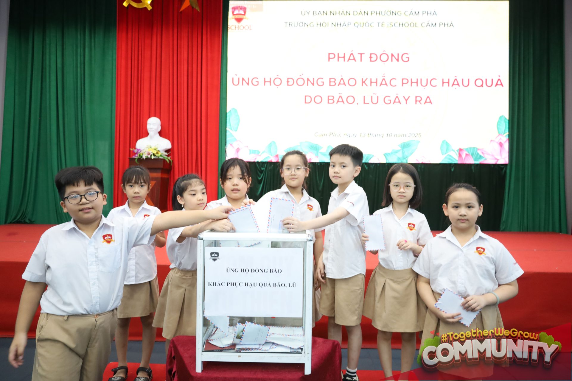 Sáng nay, trong tiết sinh hoạt đầu tuần, hưởng ứng lời phát động của Ban Giám hiệu Trường iSchool Cẩm Phả, thầy cô, học sinh và quý phụ huynh đã cùng nhau quyên góp, ủng hộ đồng bào bị thiệt hại do bão, lũ.