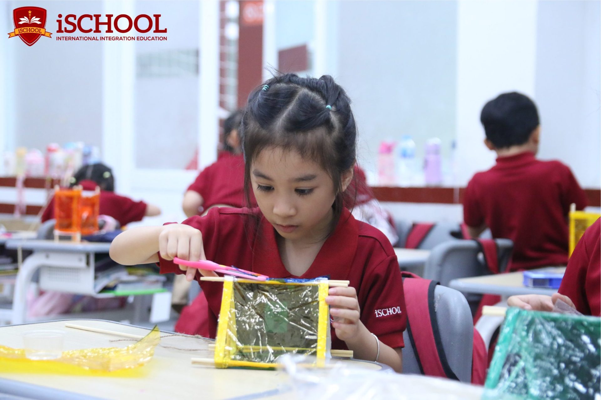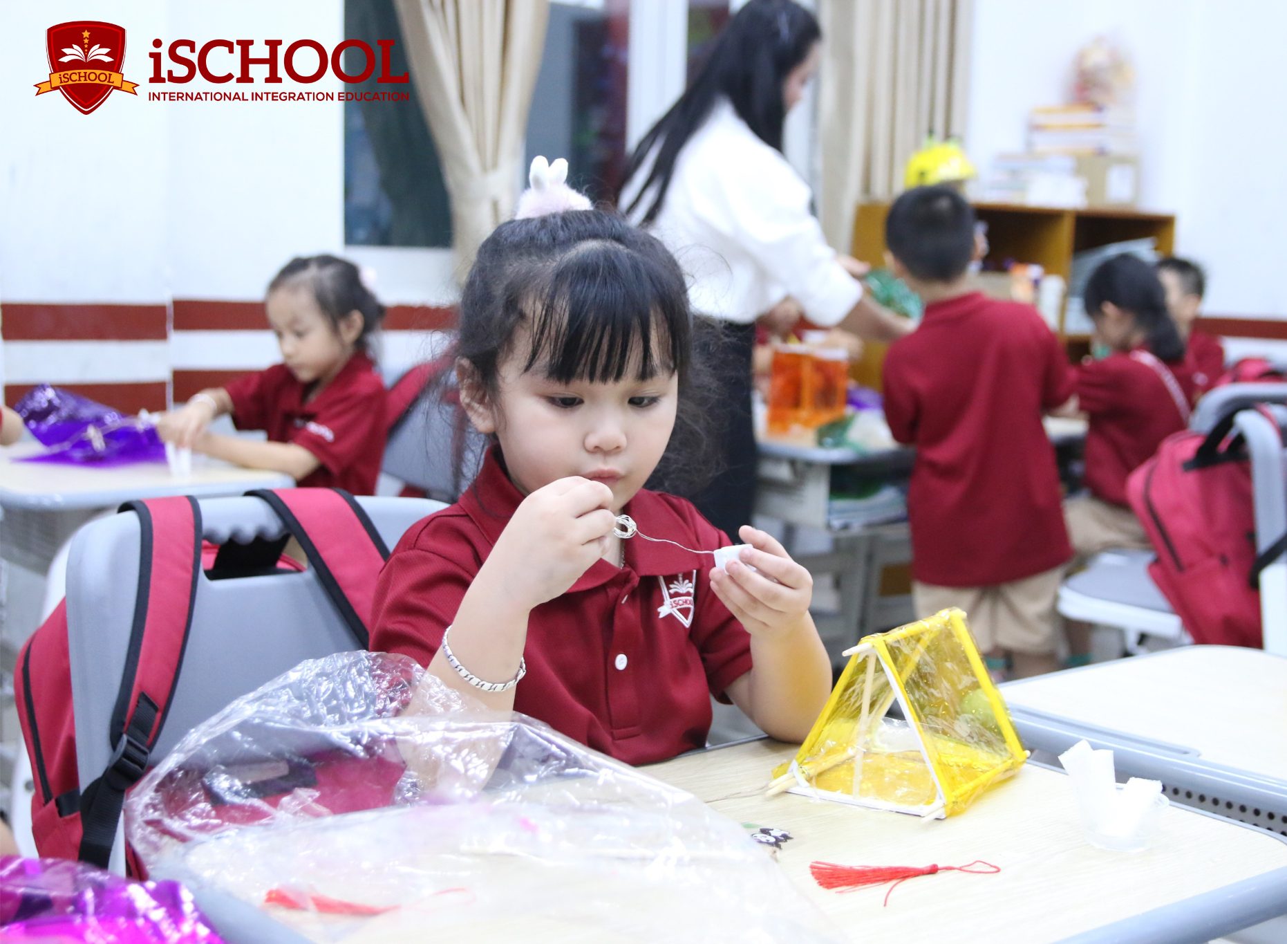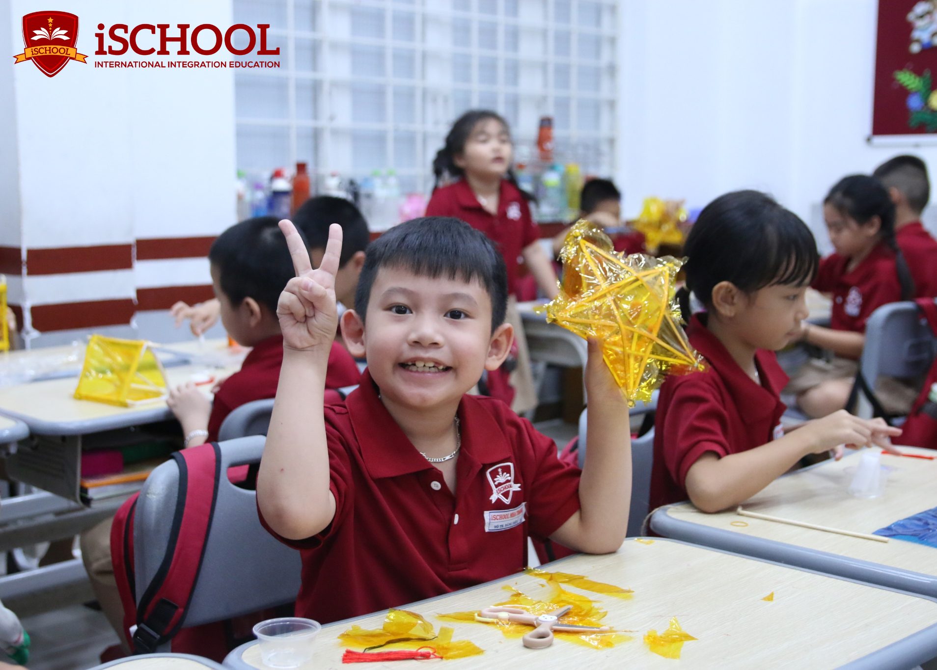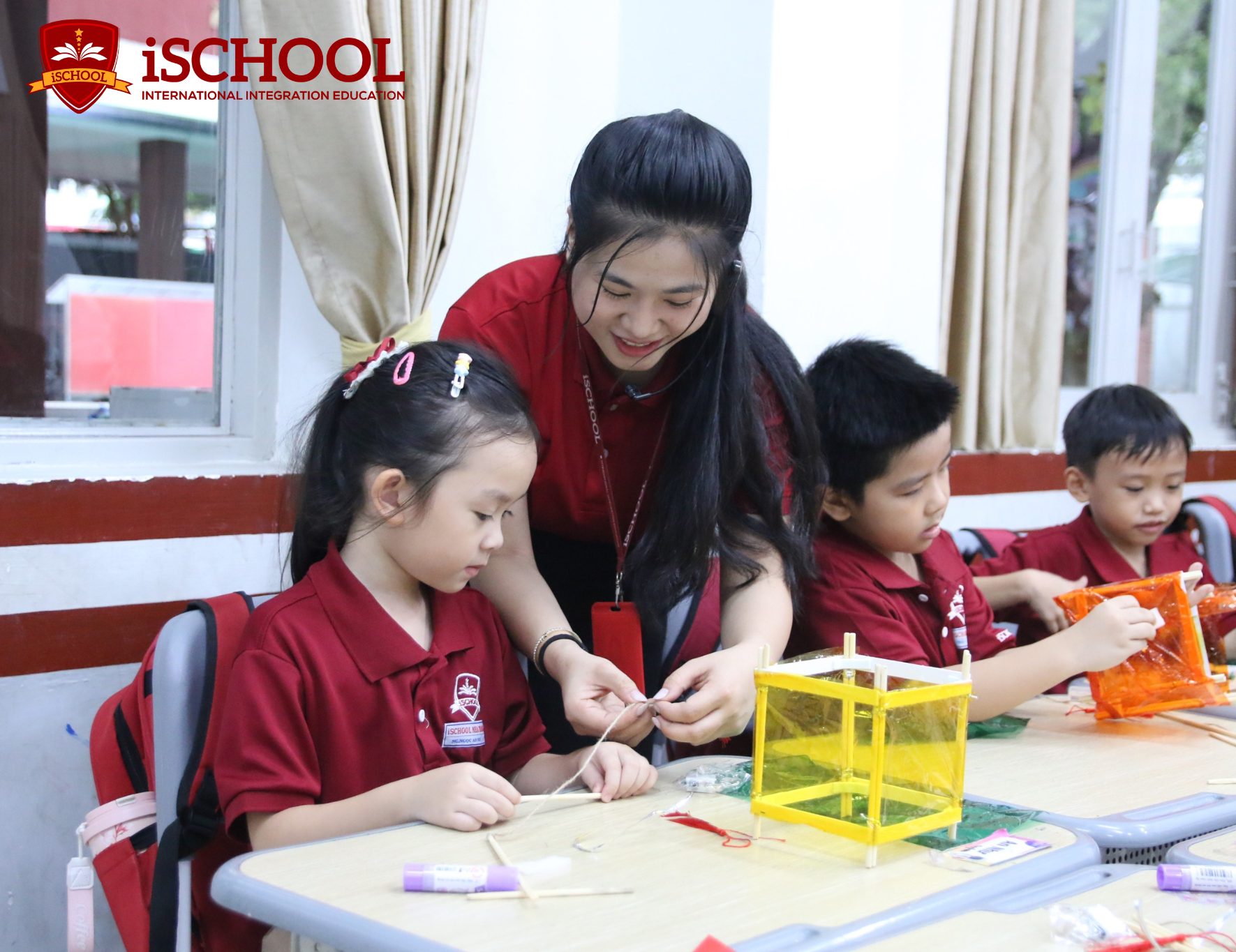 Ở hoạt động sáng tạo lồng đèn, các iSers lại say sưa với giấy màu, thanh tre, ruy băng, cùng nhau “biến hóa” nên những chiếc lồng đèn rực rỡ sắc màu – nào là ngôi sao, lồng đèn hình trụ. Mỗi sản phẩm handmade là thể hiện sự sáng tạo và tình yêu thương, thể hiện tinh thần đoàn kết và niềm vui được tự tay chuẩn bị cho ngày hội. Những chiếc lồng đèn, hoa giấy và hình dán còn được dùng để trang trí lớp học, biến không gian quen thuộc thành “góc Trung thu” lung linh, đong đầy tiếng cười.
