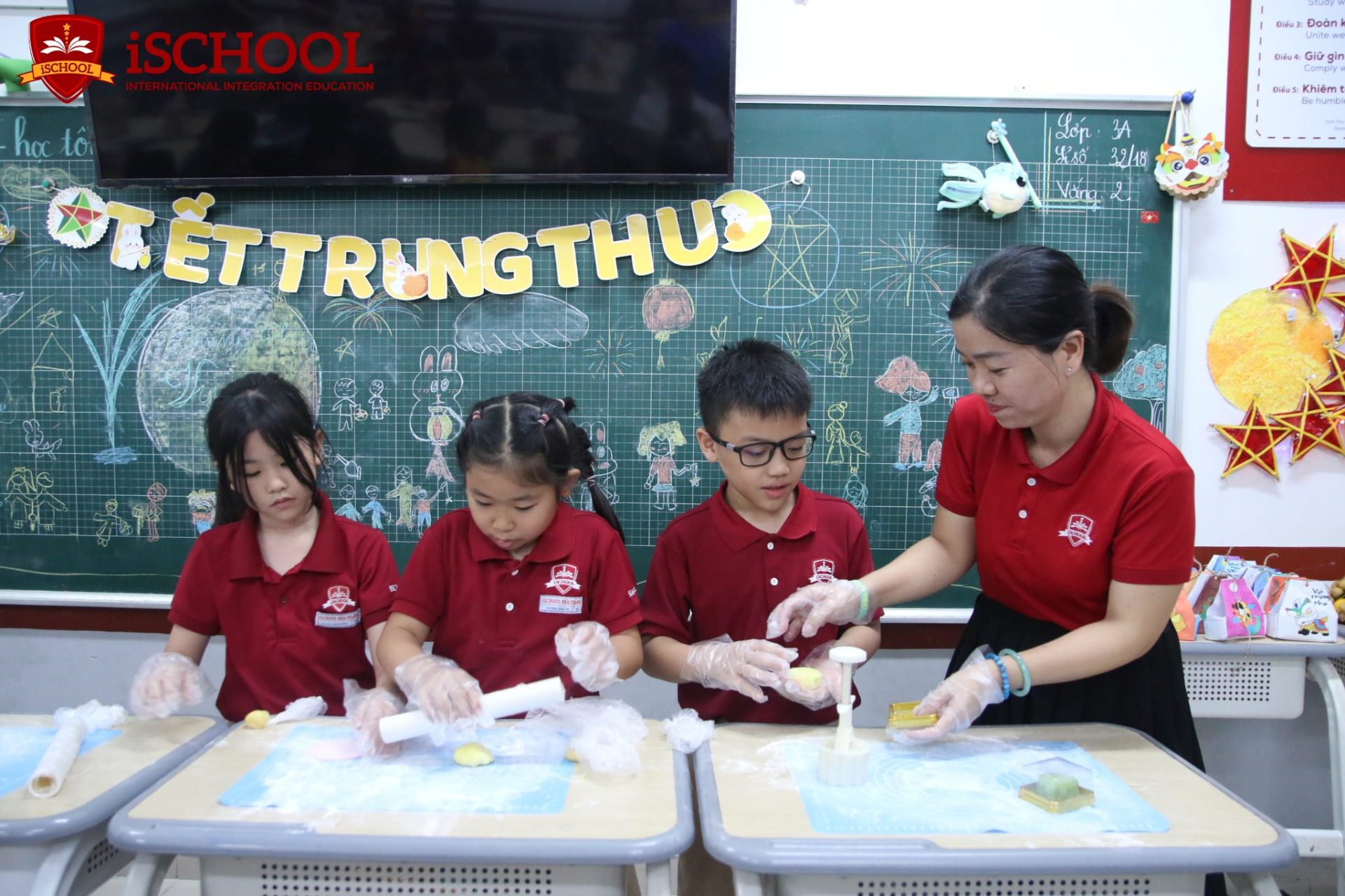 Trước thềm đêm hội, các iSers đã cùng nhau tham gia chuỗi hoạt động handmade đầy sáng tạo. Hoạt động làm bánh Trung thu dẻo, những bàn tay nhỏ nhắn khéo léo nhào nặn, tạo hình từng chiếc bánh xinh xắn từ những nguyên liệu đơn giản. Mùi thơm ngọt ngào lan tỏa khắp lớp, hòa cùng tiếng cười trong trẻo khiến không gian trở nên ấm áp như một “xưởng bánh tuổi thơ”.