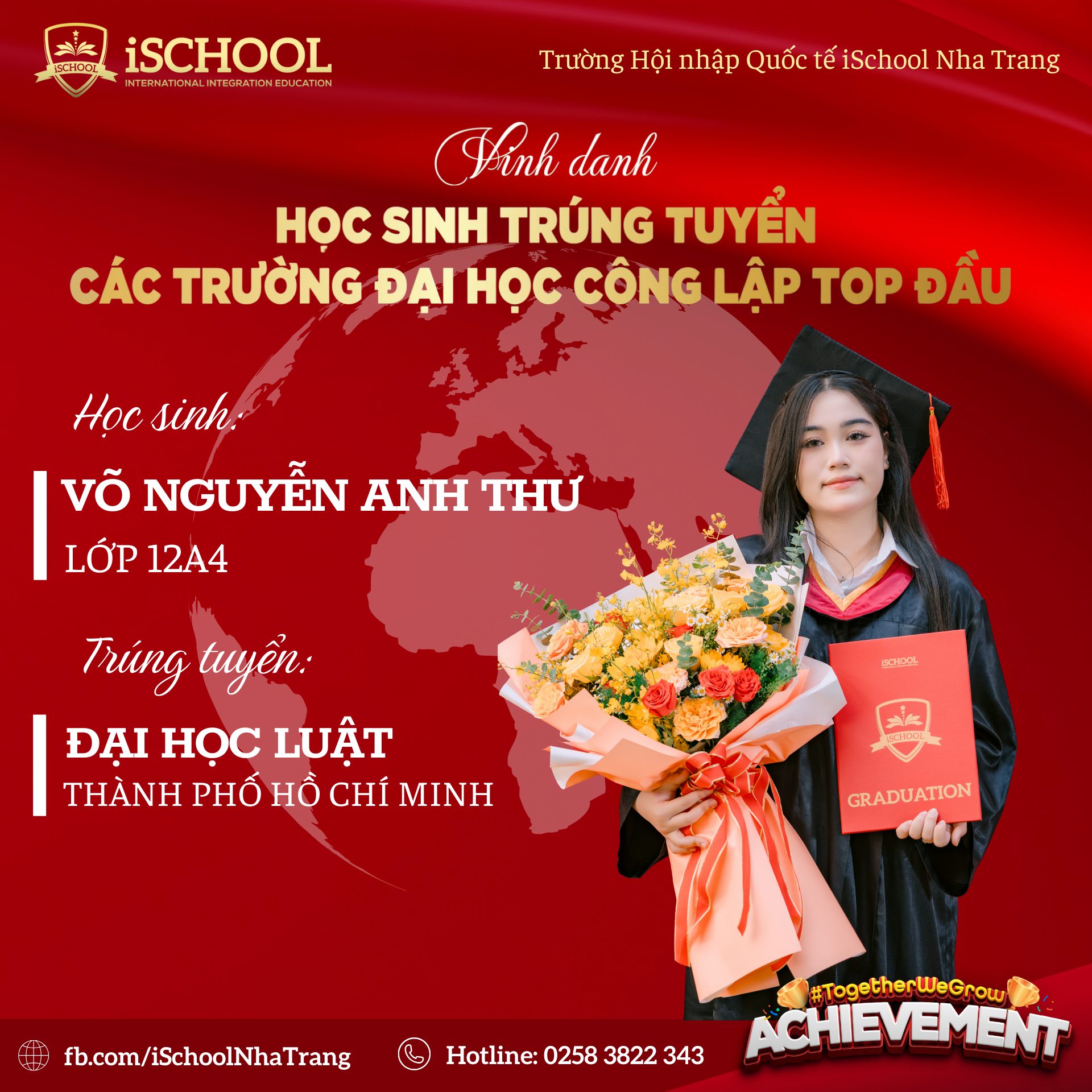 iSer Võ Nguyễn Anh Thư lớp 12A4 trúng tuyển Đại học Luật – Tp. Hồ Chí Minh