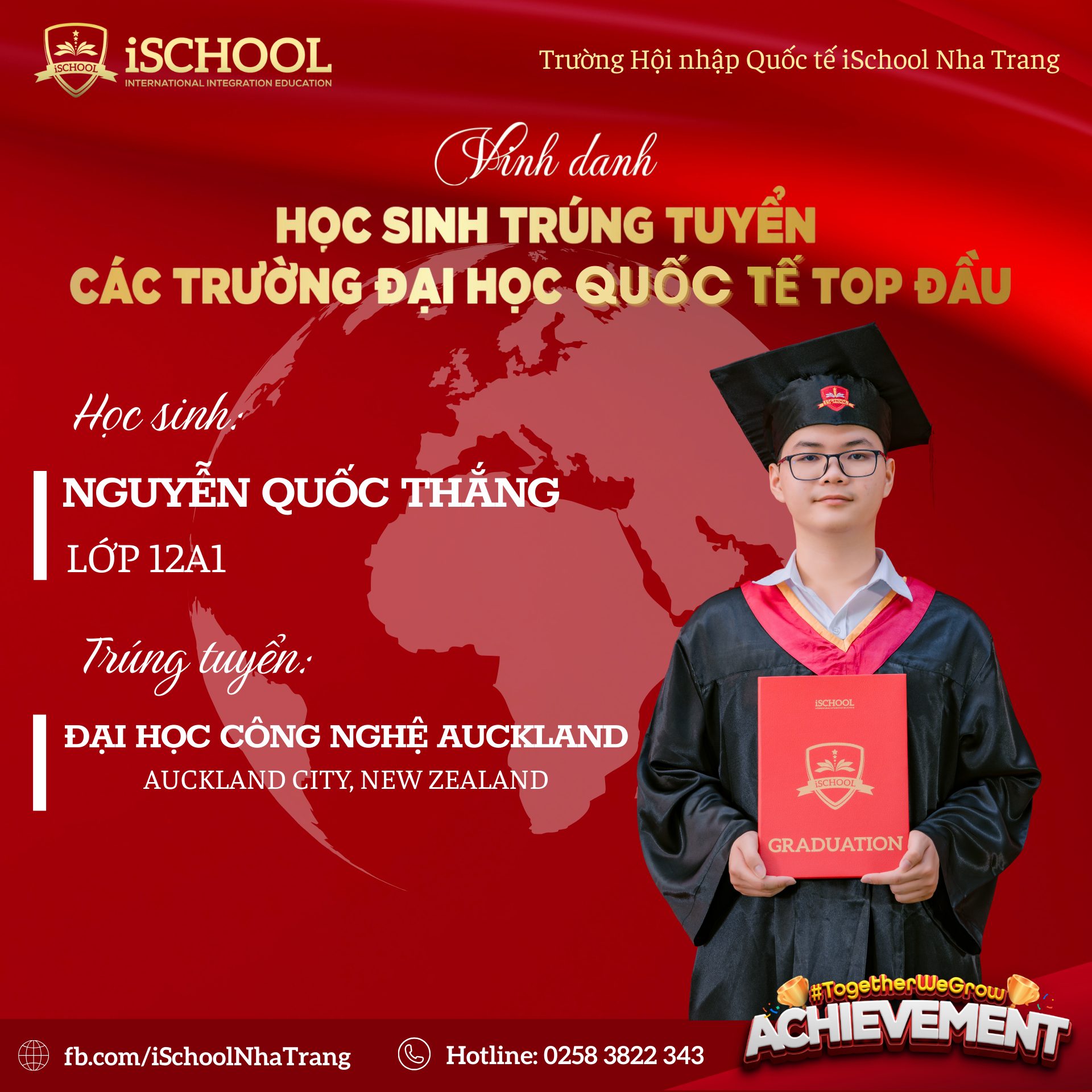 iSer Nguyễn Quốc Thắng lớp 12A1 trúng tuyển Đại học Công nghệ Auckland (New Zealand)