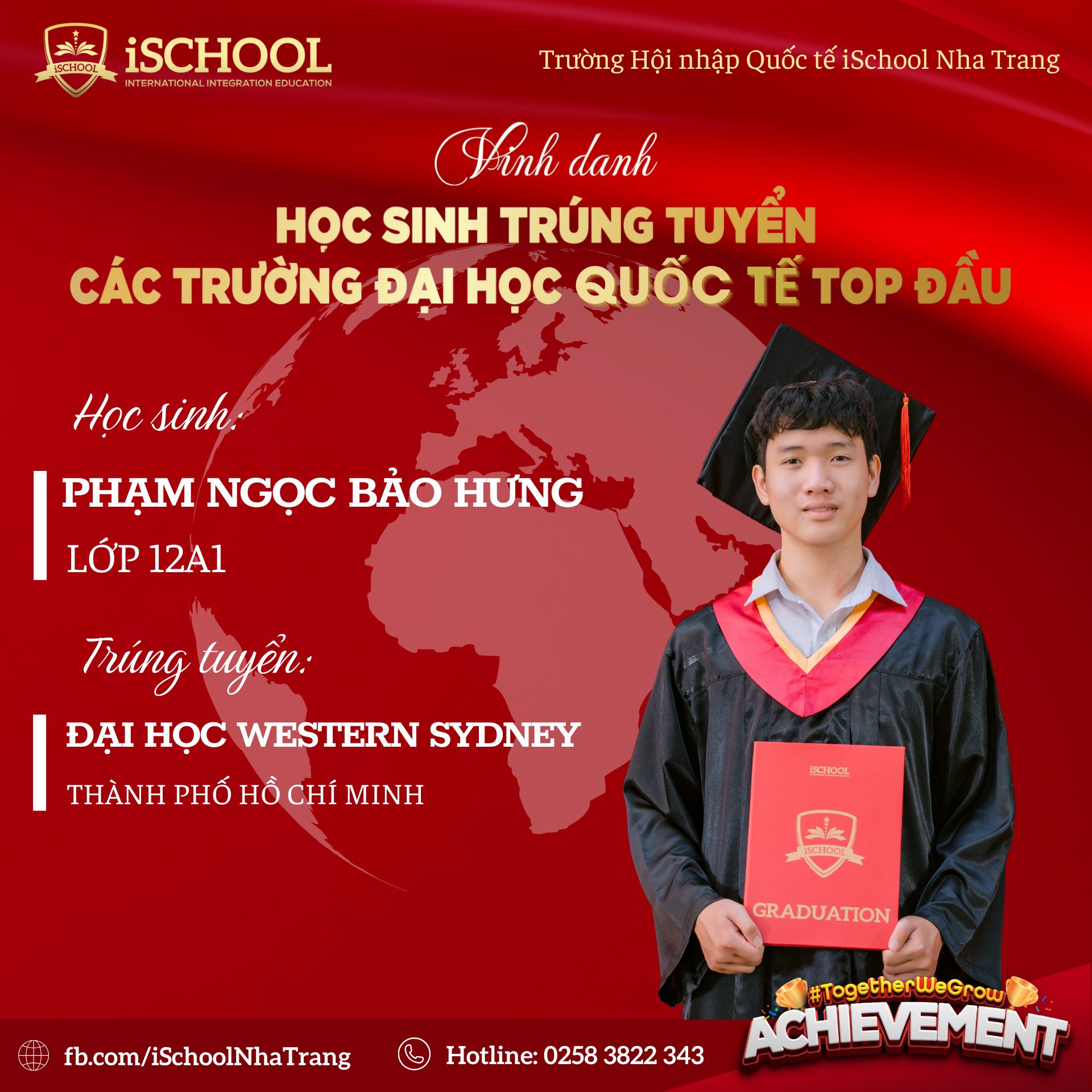 iSer Phạm Ngọc Bảo Hưng lớp 12A1 trúng tuyển Đại học Western Sydney – Tp. Hồ Chí Minh