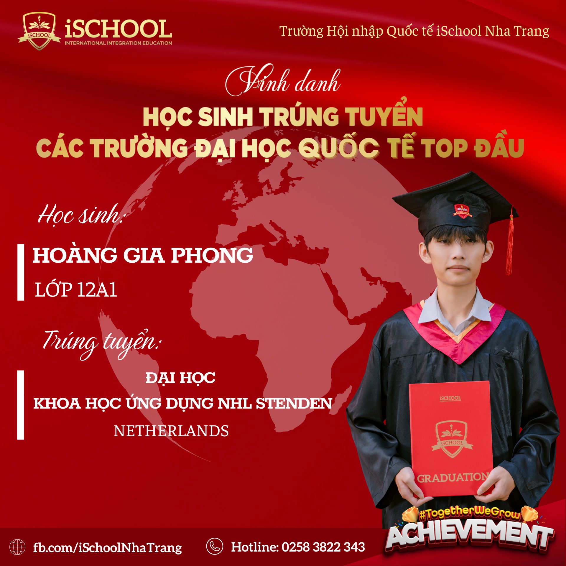 iSer Hoàng Gia Phong lớp 12A1 trúng tuyển Đại học Khoa học Ứng dụng NHL Stenden (Netherlands)