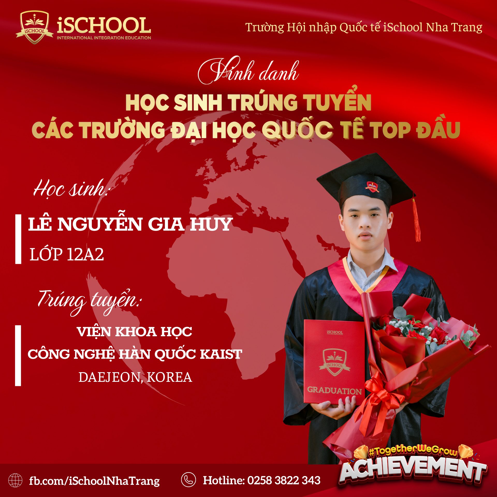 iSer Lê Nguyễn Gia Huy lớp 12A2 trúng tuyển Viện Khoa học Công nghệ Hàn Quốc Kaist (Korea)