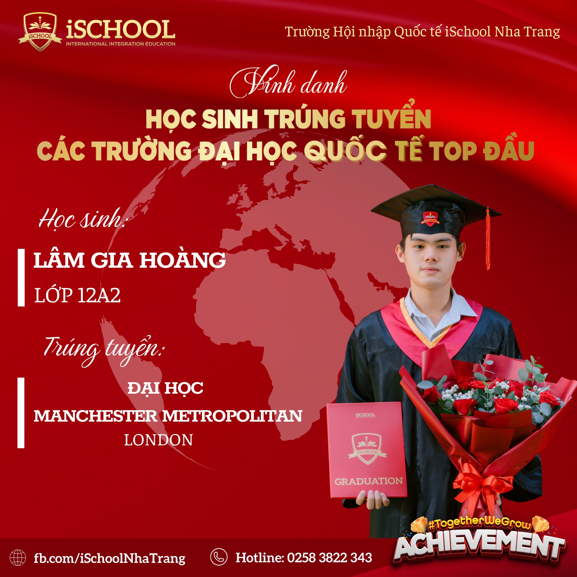 iSer Lâm Gia Hoàng lớp 12A2 trúng tuyển Đại học Manchester Metropolitan (London)