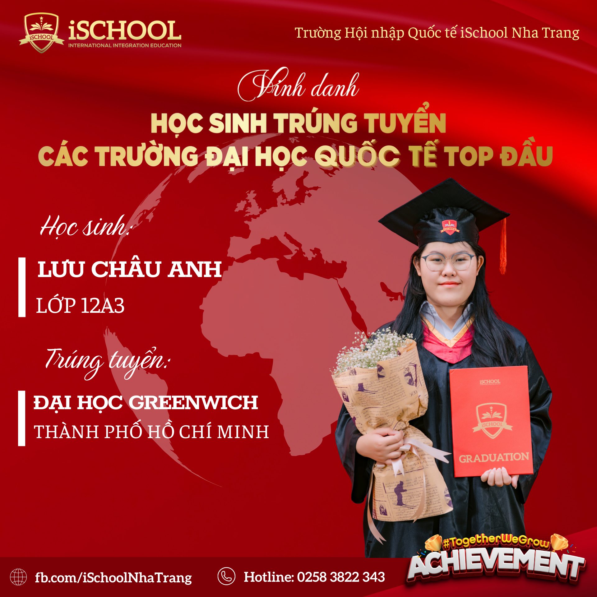 iSer Lưu Châu Anh lớp 12A3 trúng tuyển Đại học Greenwich – Tp. Hồ Chí Minh