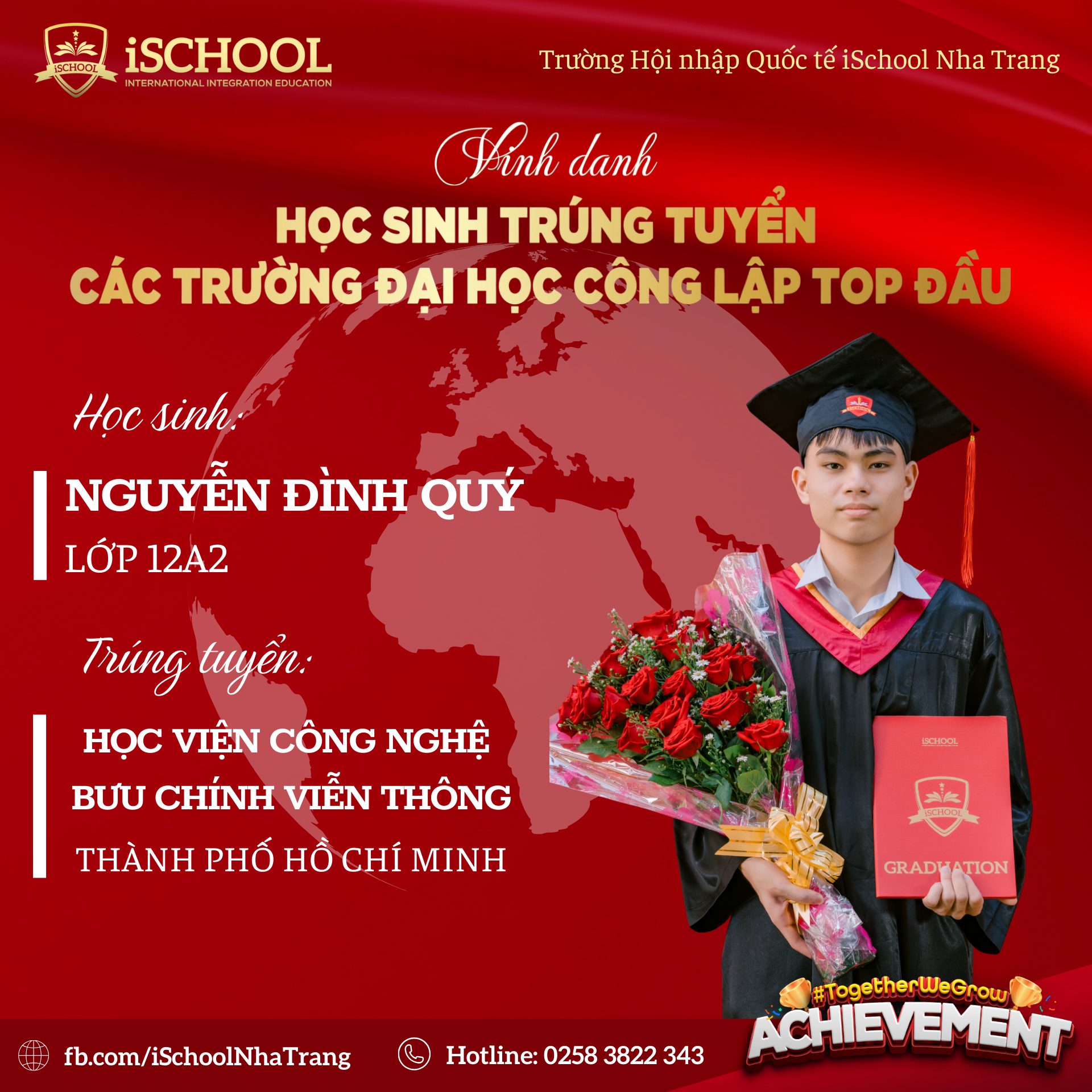 iSer Nguyễn Đình Quý lớp 12A2 trúng tuyển Học viện Công nghệ Bưu chính Viễn thông – Tp. Hồ Chí Minh