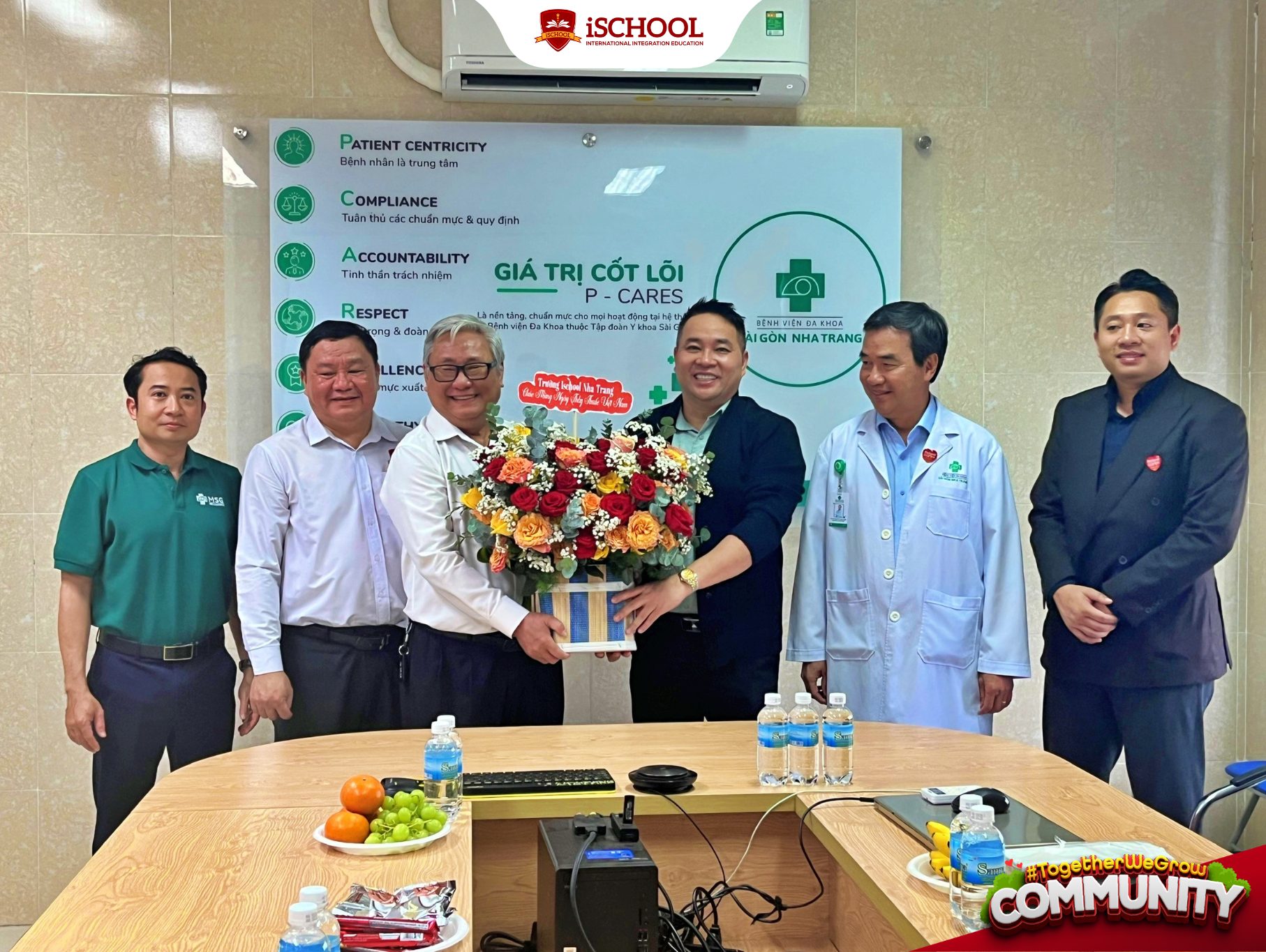 Trong không khí ấm áp và thân tình, Ban Giám hiệu iSchool Nha Trang đã gửi lời thăm hỏi, động viên và bày tỏ sự cảm phục đối với tinh thần trách nhiệm, sự tận tụy và lòng nhân ái của các y, bác sĩ. Những bó hoa tươi thắm không chỉ là món quà chúc mừng nhân dịp đặc biệt mà còn là thông điệp tri ân gửi đến những “chiến sĩ áo trắng” – những con người luôn thầm lặng phía sau mỗi ca bệnh, mỗi giây phút giành giật sự sống cho bệnh nhân.