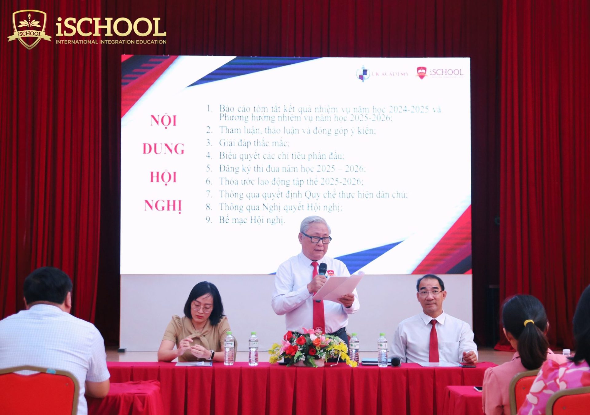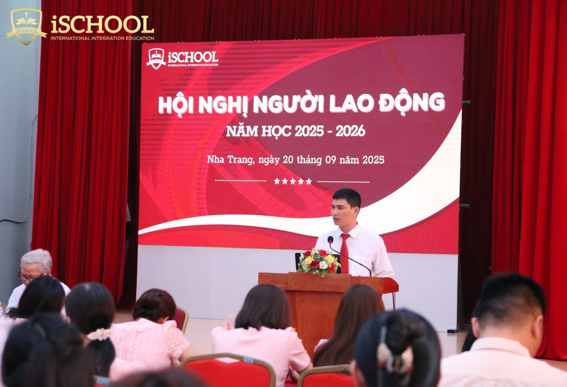 Vào chiều thứ Bảy, ngày 20/09/2025, Trường Hội nhập Quốc tế iSchool Nha Trang đã tổ chức thành công Hội nghị Người lao động năm học 2025 – 2026 với sự tham gia của toàn thể cán bộ, giáo viên và nhân viên nhà trường. Đây là sự kiện thường niên có ý nghĩa quan trọng, nhằm phát huy quyền dân chủ trực tiếp của người lao động, tạo điều kiện để đội ngũ cán bộ, giáo viên và nhân viên tham gia đóng góp ý kiến, giám sát và cùng quyết định những vấn đề liên quan đến quyền lợi, nghĩa vụ và trách nhiệm của mình.