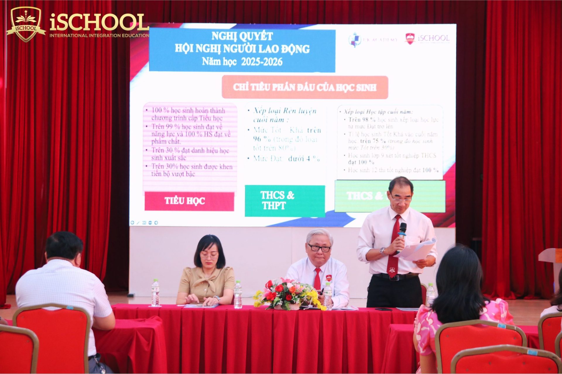 Thầy Lê Thiên Định – Phó Hiệu trưởng nhà trường thông qua Nghị quyết Hội nghị người lao động năm học 2025 – 2026
