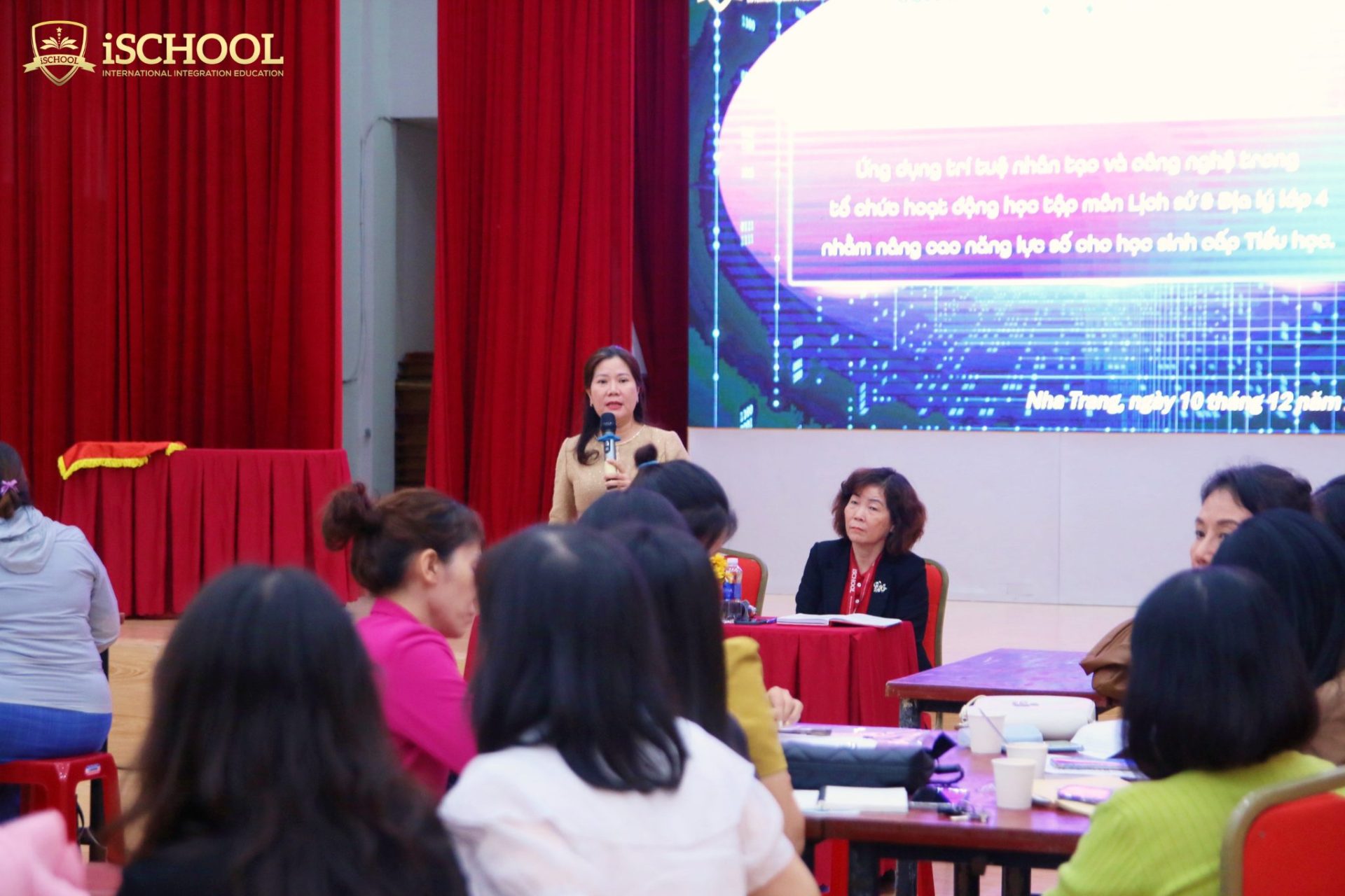 Sáng ngày 10/12/2025 tại Trường Hội nhập Quốc tế iSchool Nha Trang đã diễn ra buổi sinh hoạt chuyên đề cụm chuyên môn Tiểu học với sự tham gia của đại diện các trường trên địa bàn phường Nha Trang. Chuyên đề năm nay mang tên: “Ứng dụng Trí tuệ Nhân tạo (AI) và Công nghệ trong dạy học Lịch sử & Địa lý lớp 4 – Nâng cao năng lực số cho học sinh”; tập trung vào xu hướng giáo dục hiện đại: ứng dụng AI và các công nghệ số nhằm đổi mới phương pháp dạy học, đặc biệt ở môn Lịch sử & Địa lý lớp 4.