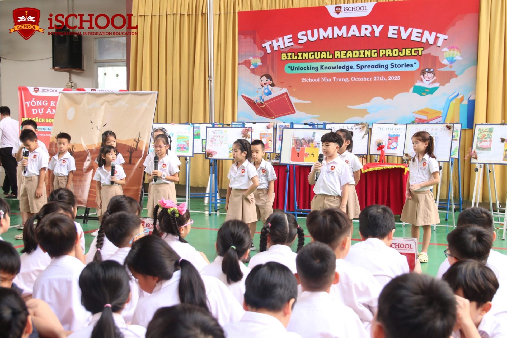 Sau 6 tuần đồng hành cùng những trang sách đầy màu sắc và những câu chuyện thú vị, dự án “Đọc sách song ngữ – Bilingual Reading” của các iSers cấp Tiểu học Trường Hội nhập Quốc tế iSchool Nha Trang, đã khép lại bằng chuỗi hoạt động tổng kết rộn ràng, sáng tạo và đầy cảm xúc diễn ra vào sáng ngày 27/10/2025.