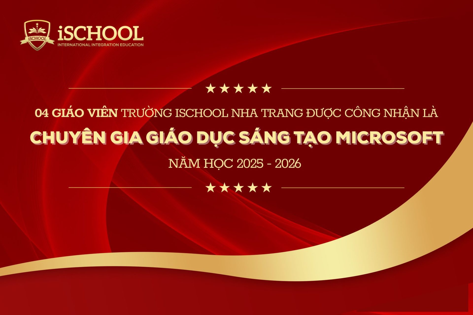 Trong hành trình đổi mới và hội nhập giáo dục toàn cầu, Trường Hội nhập Quốc tế iSchool Nha Trang tự hào ghi dấu với thành tích nổi bật khi có 04 giáo viên xuất sắc được công nhận là Chuyên gia Giáo dục Sáng tạo Microsoft – Microsoft Innovative Educator Expert (MIEE). Đây là danh hiệu quốc tế uy tín dành cho những nhà giáo tiên phong, luôn đi đầu trong ứng dụng công nghệ và sáng tạo nhằm nâng cao chất lượng dạy học.
