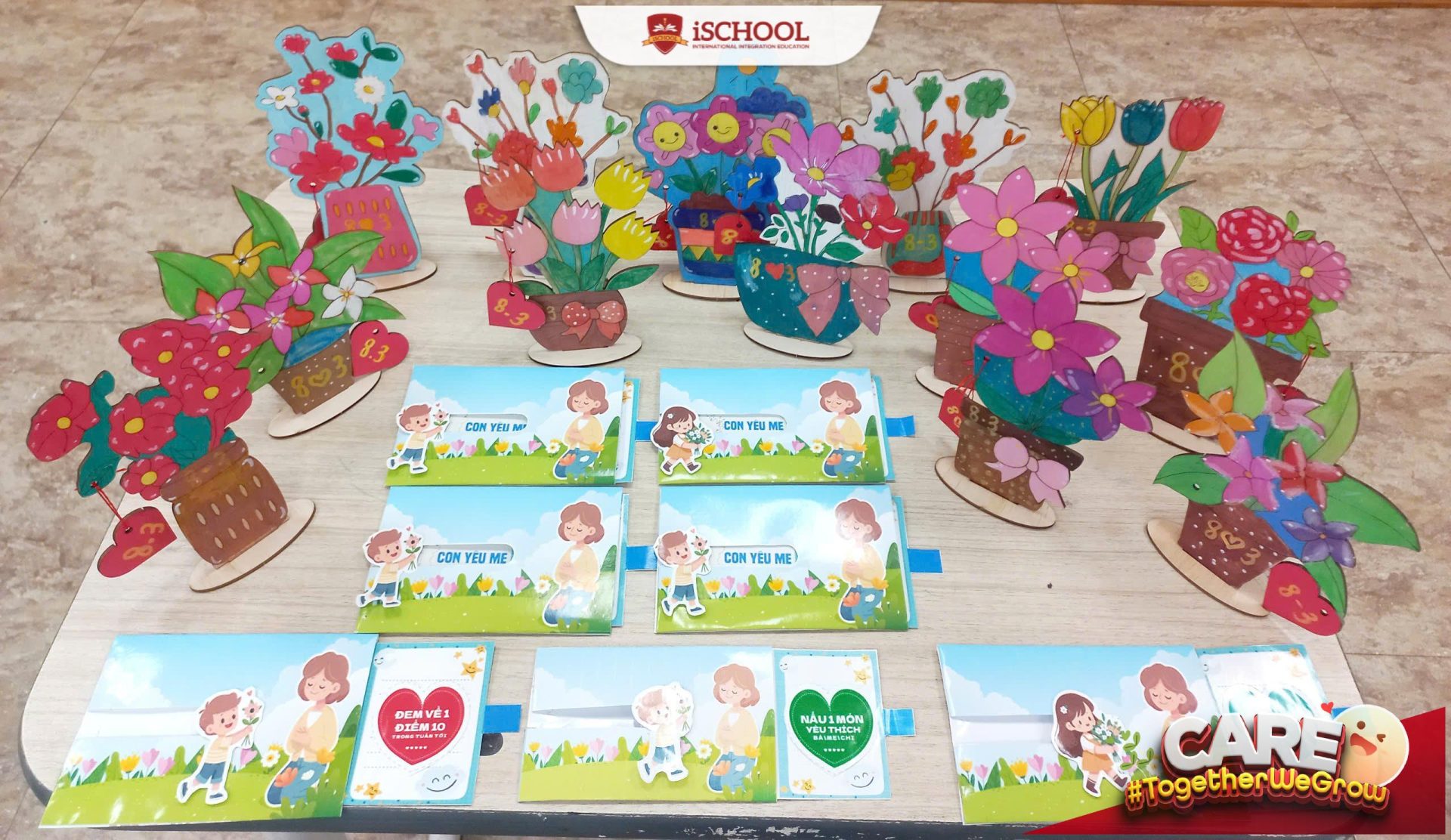 Từng tấm thiệp nhỏ, từng món quà được các con tự tay làm nên bằng sự khéo léo và tấm lòng yêu thương. Dù còn giản dị nhưng trong đó chứa đựng thật nhiều tình cảm, sự biết ơn và những lời chúc ngọt ngào mà các con muốn dành cho những người phụ nữ thân yêu của mình