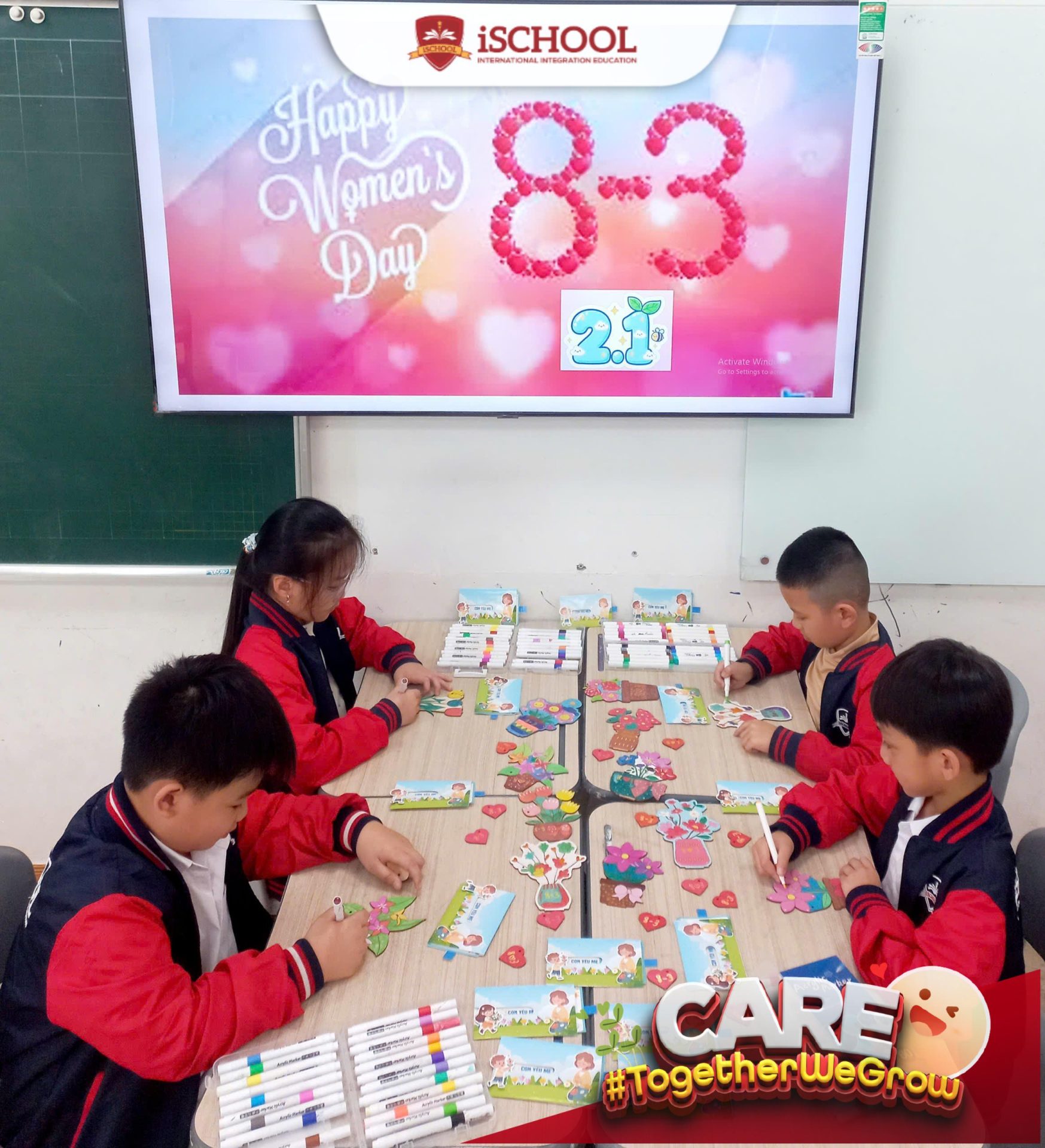 Nhân dịp Ngày Quốc tế Phụ nữ 8/3, các bạn học sinh khối Tiểu học đã cùng nhau thực hiện những hoạt động ý nghĩa như viết lời chúc và làm những món quà handmade xinh xắn để gửi tặng mẹ, bà và cô giáo.
