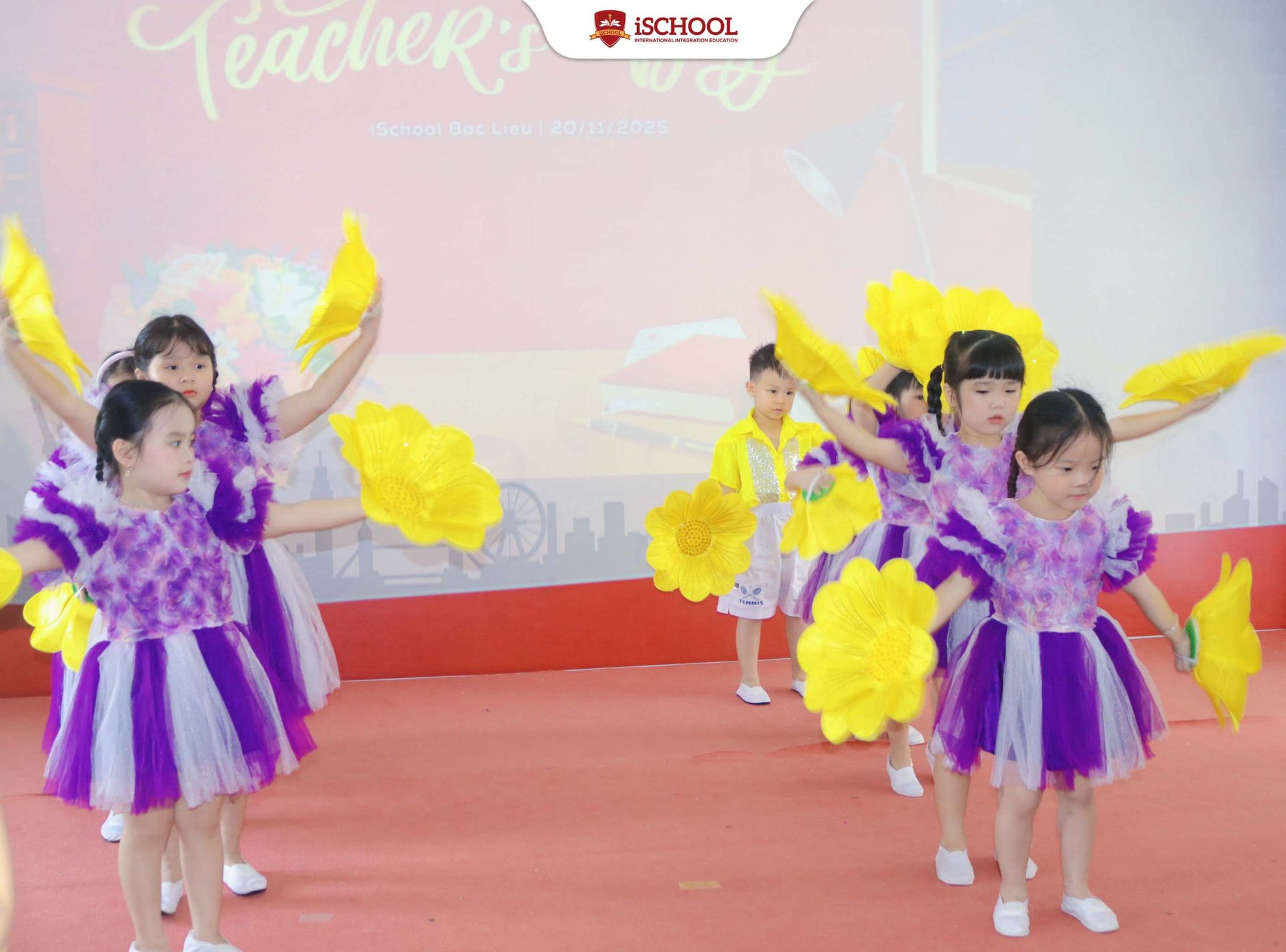 Hoạt động không chỉ giúp các bé phát triển năng khiếu nghệ thuật mà còn góp phần rèn luyện sự mạnh dạn, gắn kết tập thể và nuôi dưỡng tình yêu trường lớp. Cuộc thi văn nghệ 20/11 tại Mầm non iSchool Bạc Liêu đã để lại nhiều hình ảnh đẹp, tạo nên kỷ niệm ý nghĩa cho cô và trò trong mùa tri ân.