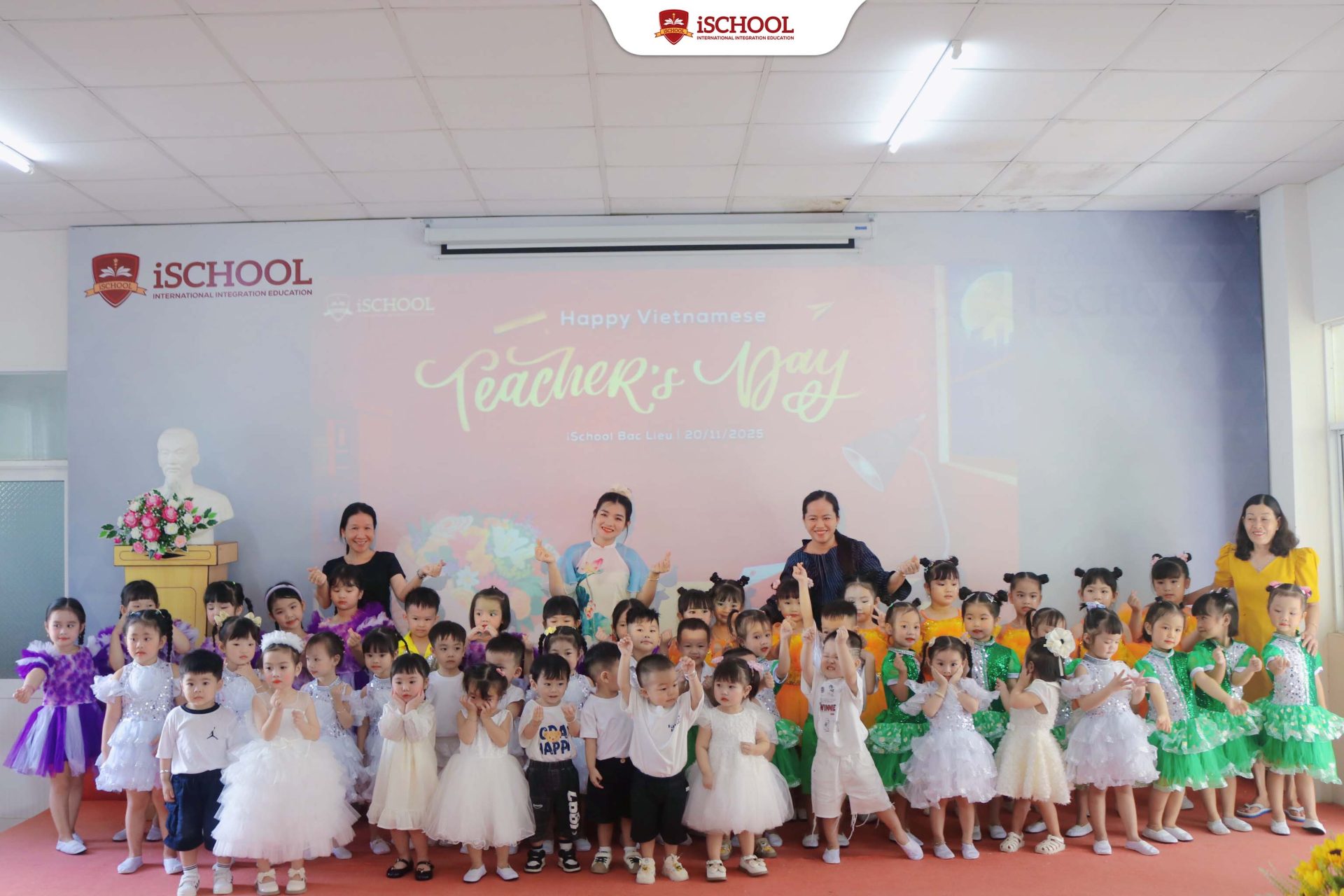 Nằm trong chuỗi hoạt động chào mừng Ngày Nhà giáo Việt Nam 20/11, trường Mầm non iSchool Bạc Liêu đã tổ chức hội thi văn nghệ giữa các lớp với không khí vô cùng sôi nổi và đáng yêu. Đây là hoạt động thường niên nhằm tạo sân chơi bổ ích cho các bé, đồng thời thể hiện tình cảm tri ân dành cho thầy cô nhân ngày lễ ý nghĩa này.