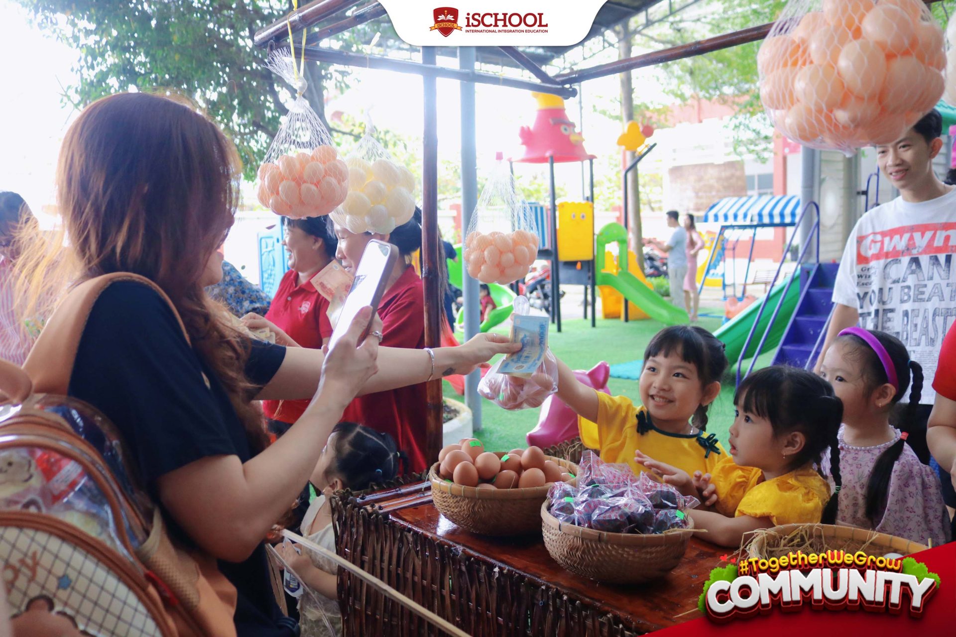Buổi tổng kết dự án diễn ra sôi nổi với Hội chợ Nông sản, nơi các bé được hóa thân thành “tiểu thương nhí” để giới thiệu và bán các sản phẩm từ nông trại của lớp.