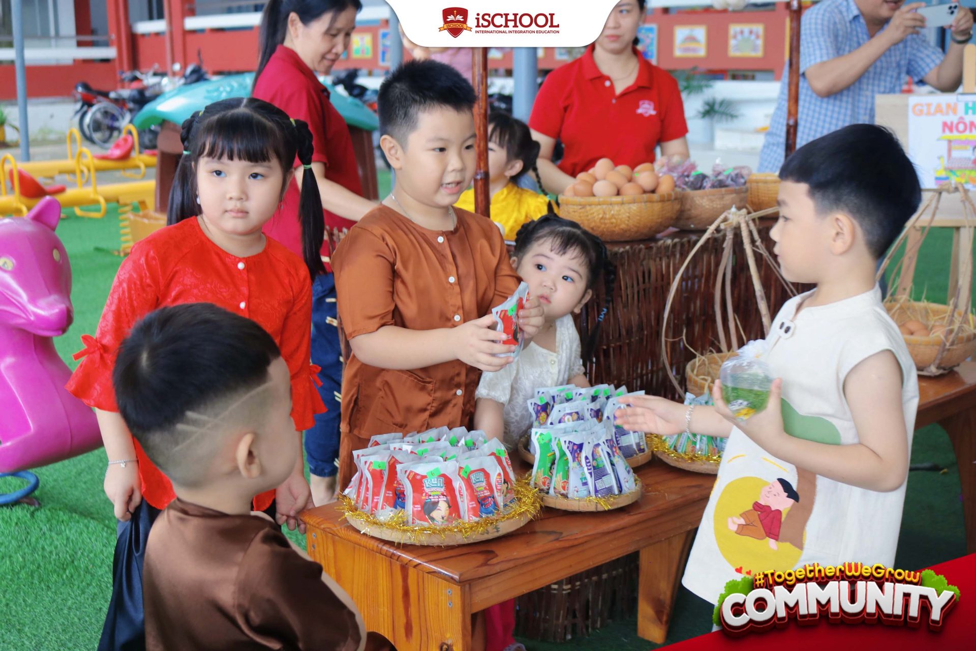 Buổi tổng kết dự án diễn ra sôi nổi với Hội chợ Nông sản, nơi các bé được hóa thân thành “tiểu thương nhí” để giới thiệu và bán các sản phẩm từ nông trại của lớp.
