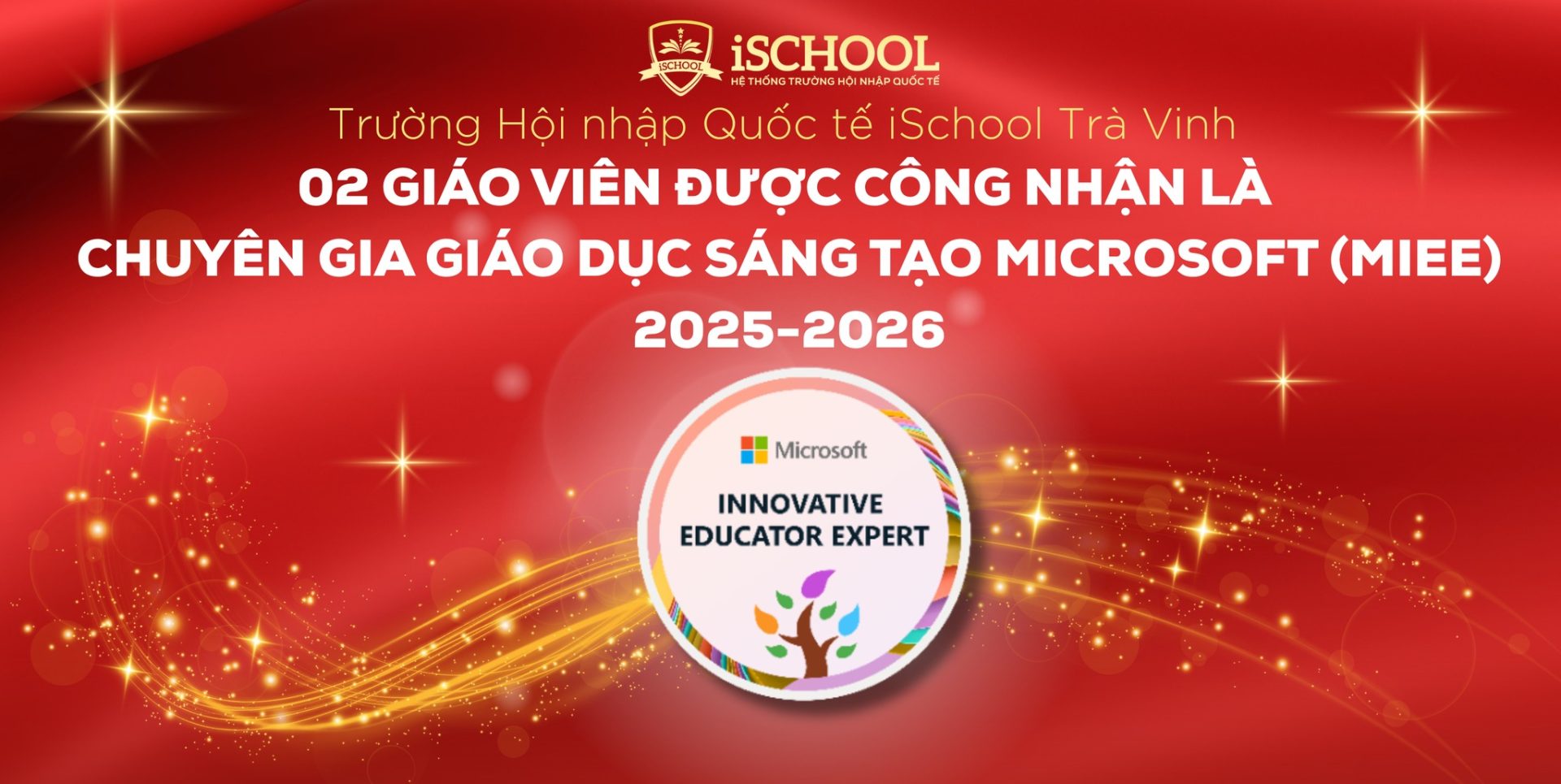 🌟 TỰ HÀO iSCHOOL TRÀ VINH – Hai cô giáo của iSchool Trà Vinh vừa được Microsoft công nhận danh hiệu Chuyên gia Giáo dục Sáng tạo Microsoft (Microsoft Innovative Educator Expert – MIEE) năm học 2025 – 2026.