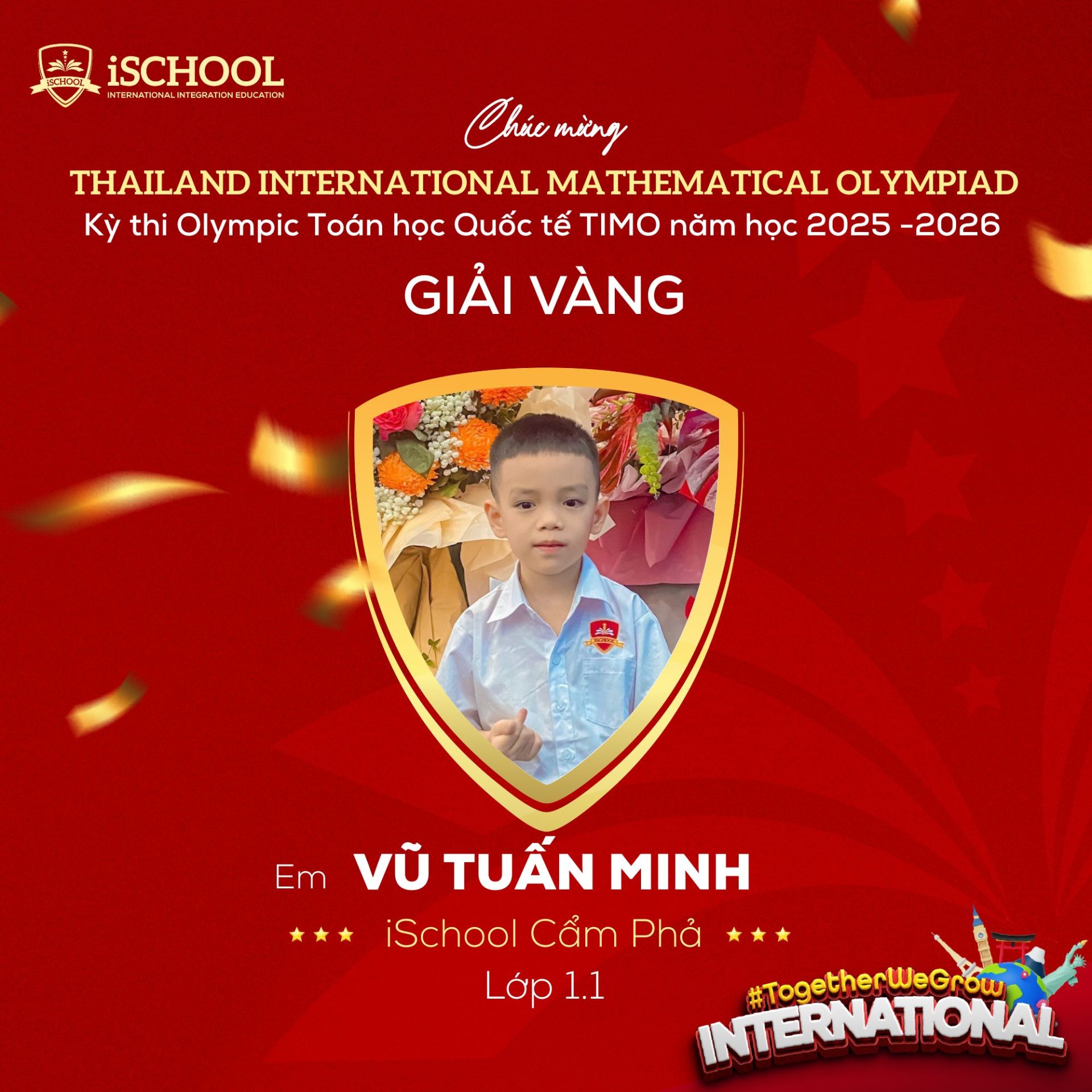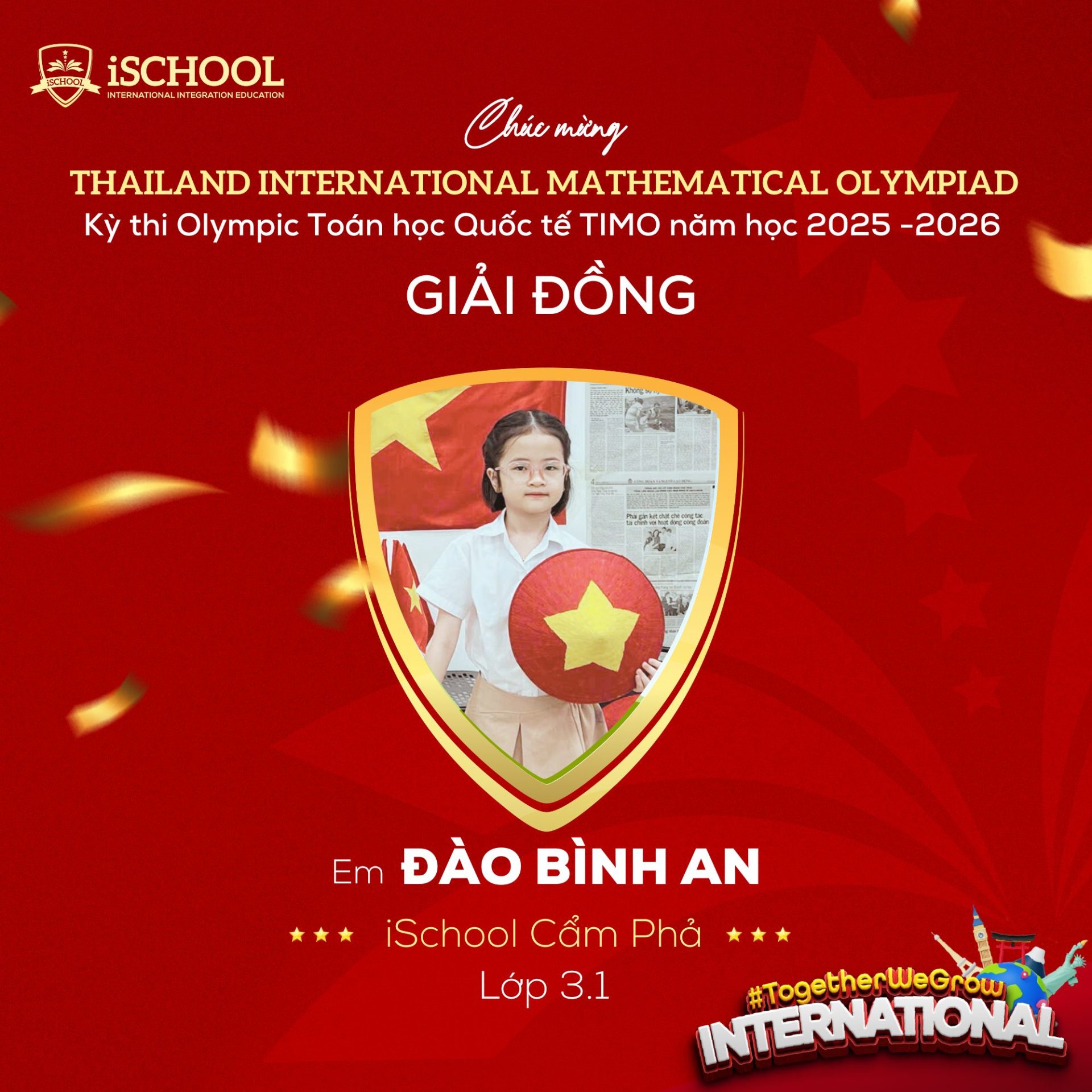 iSchool Cẩm Phả vô cùng tự hào và chúc mừng các em học sinh đã xuất sắc đạt thành tích cao tại Vòng Quốc gia Kỳ thi Olympic Toán học Quốc tế TIMO – một sân chơi trí tuệ uy tín, quy tụ học sinh đến từ nhiều quốc gia trên thế giới